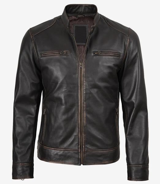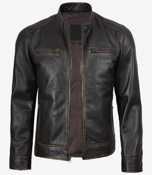 Men’s Dark Brown Cafe Racer Leather Jacket